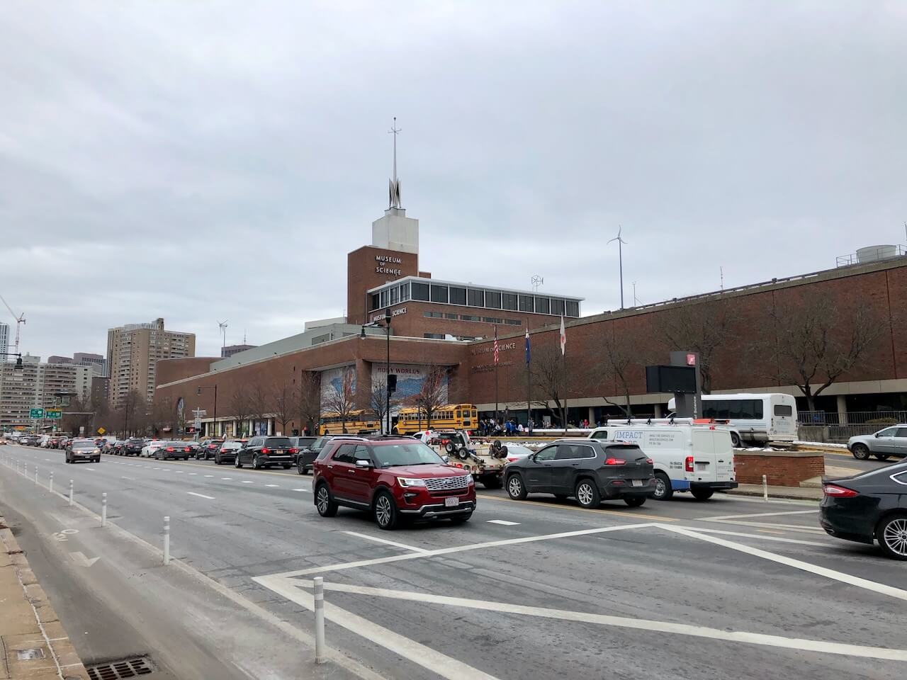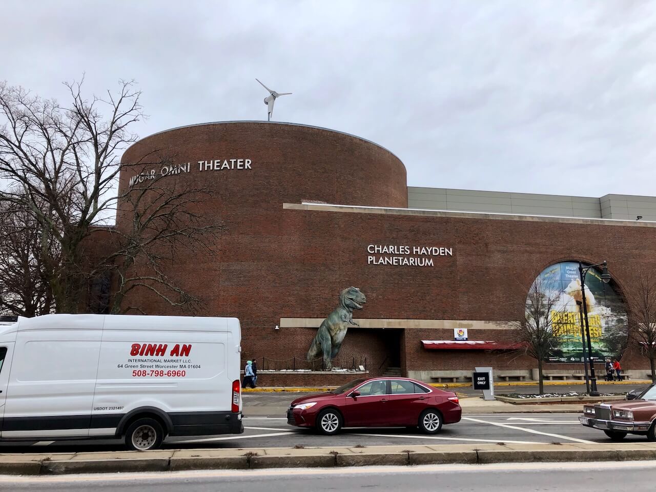 Boston greeted me with that special December shade of grey that makes even museums look slightly philosophical. I took a short walk around the Museum of Science, which from the outside feels less like a museum and more like a brick spaceship that landed next to a very busy road. Cars rushed by, school buses lined up, and the Charles River flowed calmly, clearly unimpressed by human ambition and architecture. Somewhere near the planetarium, a lonely dinosaur statue stared into traffic while a white bicycle, wrapped around a pole like a tragic modern art installation, silently judged us all. It was a brief walk, cold and unplanned, but exactly the kind of urban moment that makes you smile and pull your hands deeper into your pockets.