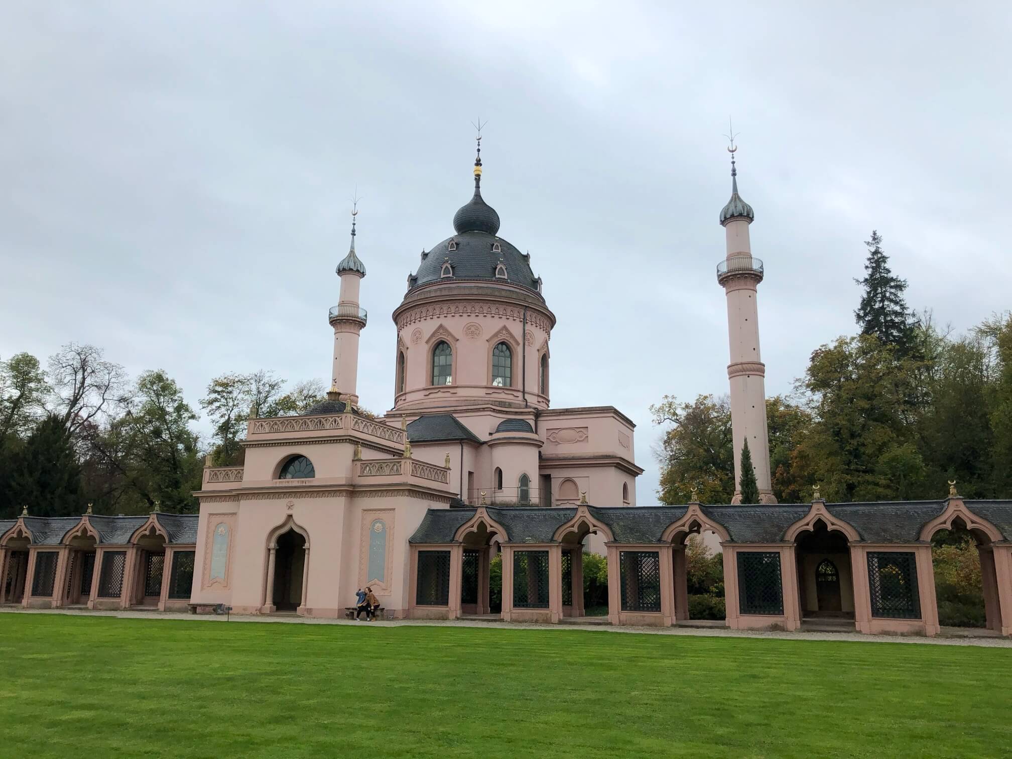 Then there were the gardens, which clearly had a lot of free time and excellent funding. Endless paths stretched out like polite invitations to get lost, hedges stood trimmed with military discipline, and fountains whispered instead of splashing. We wandered without direction, which is the correct way to experience a place like this. One moment we were strolling down a grand avenue that felt designed for philosophical debates, the next we were staring at a stone ruin that looked ancient enough to dispense life advice. And just when the scenery started to feel classically European, the mosque appeared — pink, exotic, and utterly unapologetic about not matching anything else. Schwetzingen, it turns out, likes to keep you gently confused.