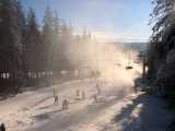New Year at Lipno with snowboards, snow cannons, frozen lake walks and unhurried family moments under a cold blue winter sky.